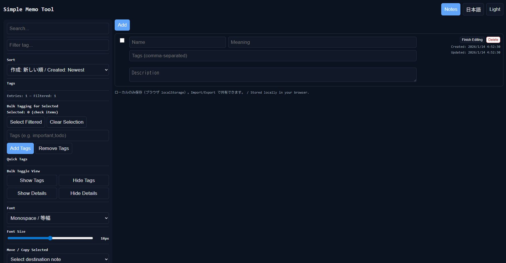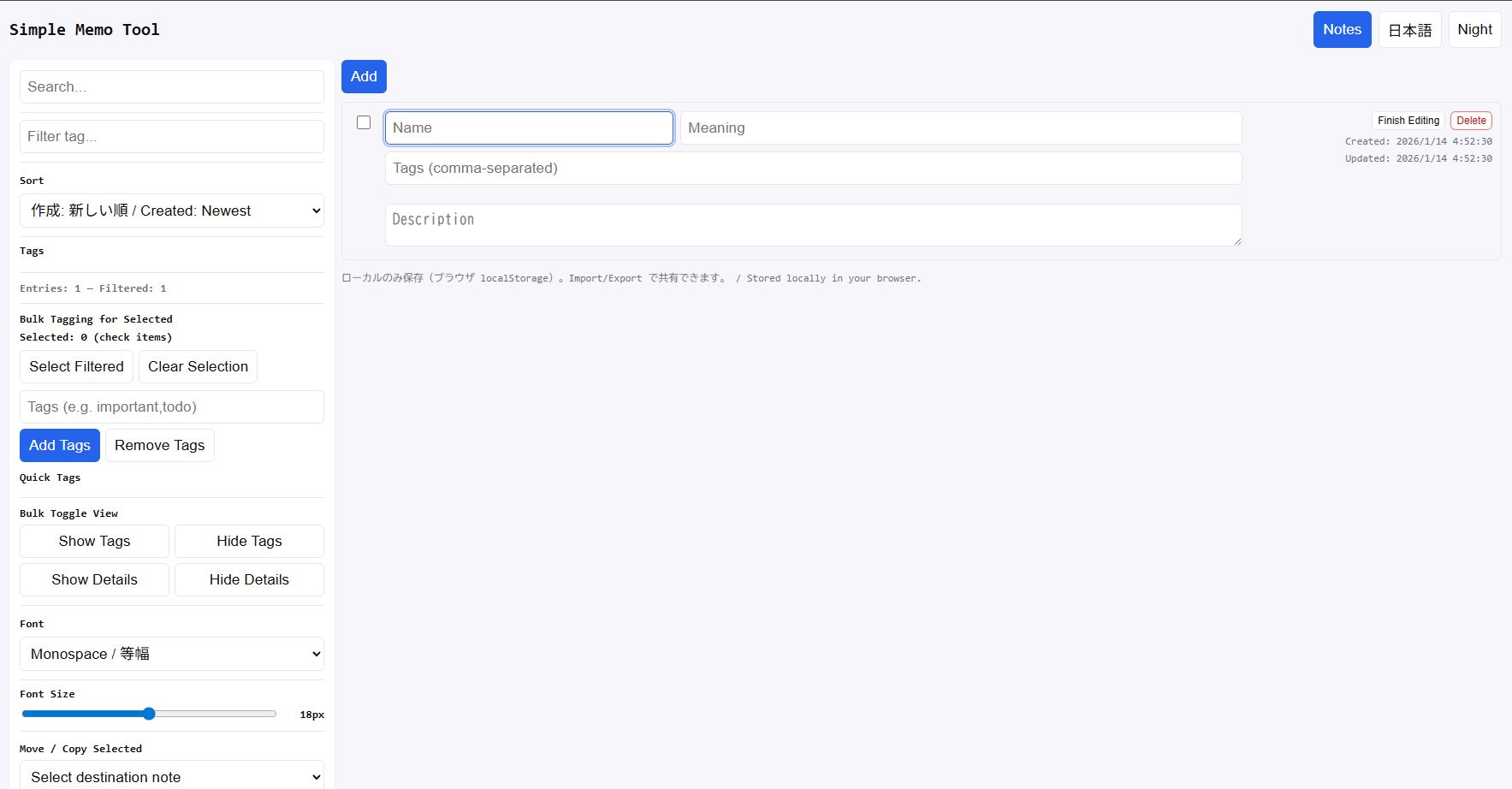 # Simple Memo Tool / シンプルメモツール